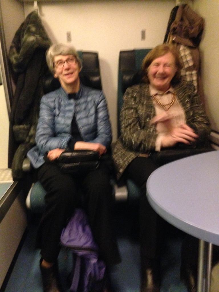 Après une heure de bonheur à regarder et à écouter la symphonie fantastique de Berlioz (présentation), nous avons pris un nouveau bus pour nous conduire chez Aline où nous attendait une pause café améliorée par une quiche et du vin, des pâtisseries faites maison à notre intention. Il a fallu interrompre les conversations pour nous diriger au restaurant réservé. La promenade vers la place centrale de Tampere, nous a ouvert un peu l’appétit, assez pour commander un potage ou une salade.