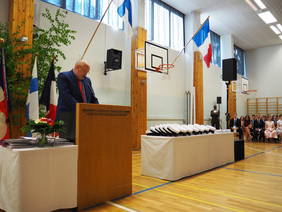 Cette cérémonie a permis de donner la parole au nouvel ambassadeur de France en Finlande, monsieur Serge Tomasi qui a invité ensuite à la résidence de France les lauréats et leurs professeurs.
