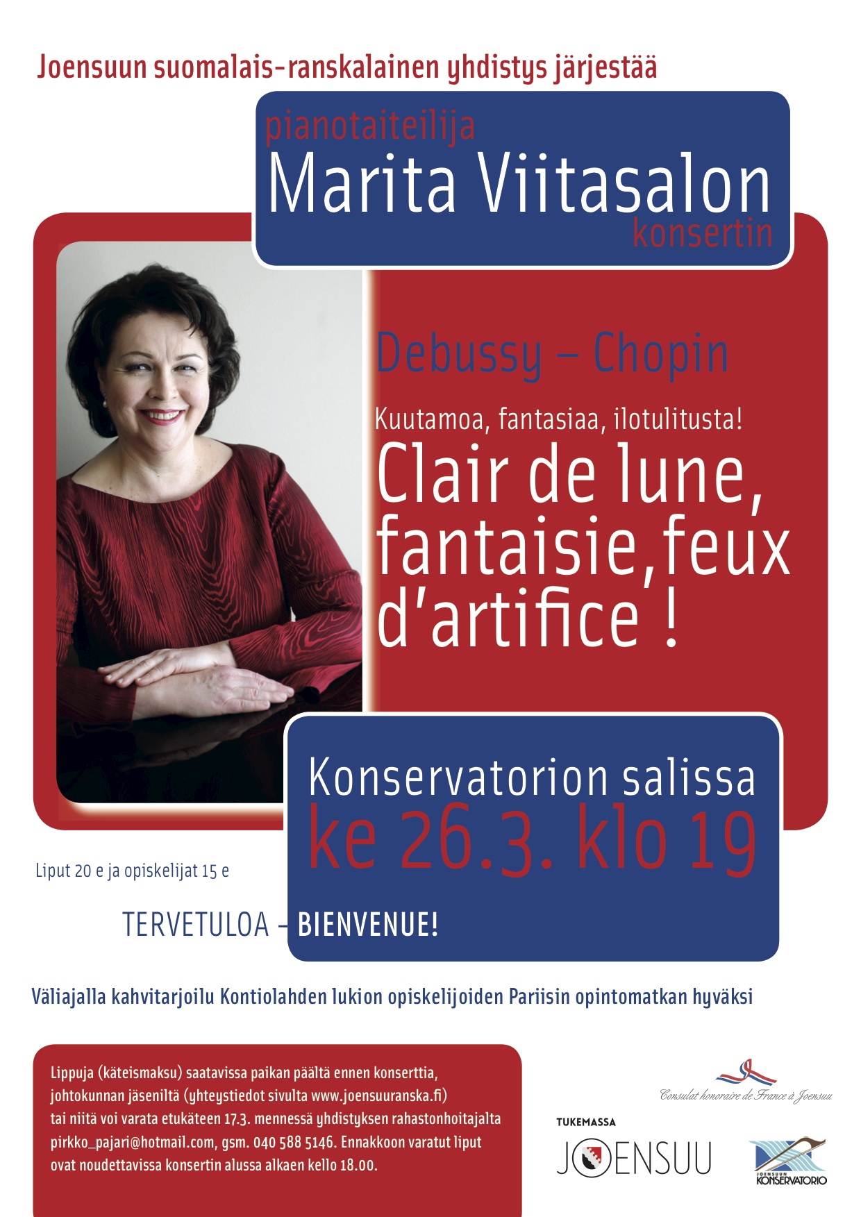 - Le vendredi 23 mai, les membres et amis du cercle franco-finlandais d’Helsinki sont conviés à la soirée de printemps à 19h00 où se produira la célèbre pianiste Laura Mikkola. Les Amopaliennes et Amopaliens de Finlande sont donc les bienvenus ce soir-là. Voir programme et détails