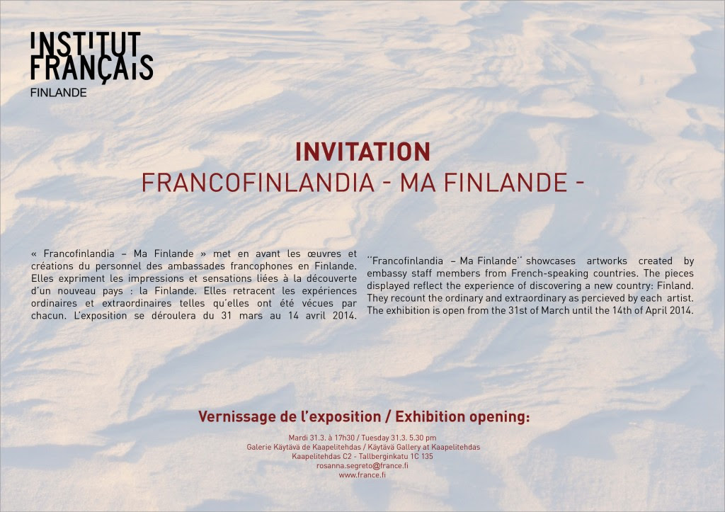 - Vernissage d’une belle exposition à l’Institut Français de Helsinki. La présidente était présente et invite les Amopaliens à s’y rendre. Article et photos.