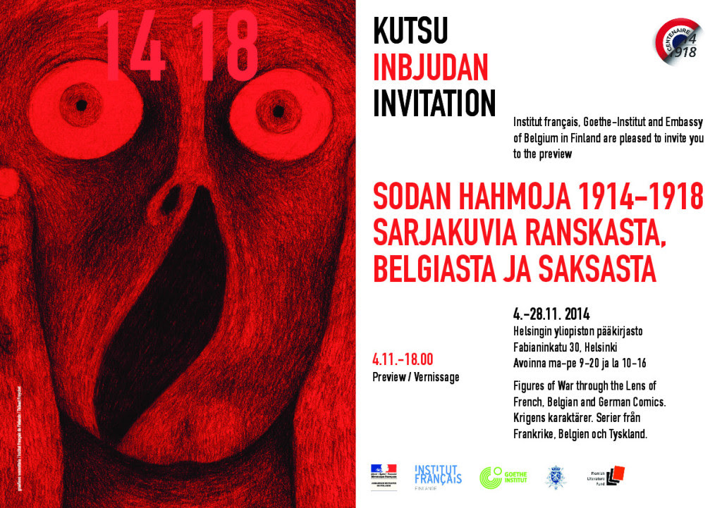 Le 4 novembre: vernissage de l’exposition de bandes dessinées de France, de Belgique et d’Allemagne sur la guerre 1914-18 à la bibliothèque universitaire Fabianinkatu