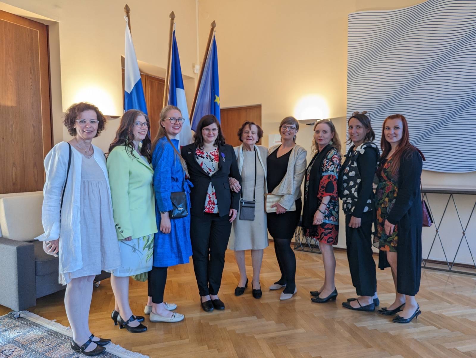 Kirsti Santaholma (trésiorière) Margit Pennanen (secrétaire) et Claude Anttila (vice-présidente) ont représenté l’Association Amopa de Finlande.à la remise de décorations du 12 mai à l’ambassade de France