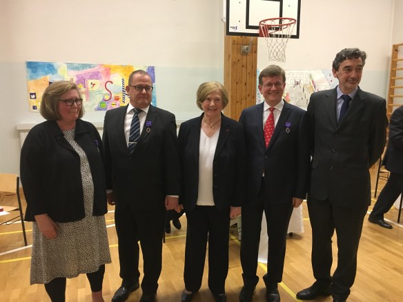 L’année scolaire se terminant le 3 juin, la présidente a été invitée à la remise des casquettes blanches des bacheliers du lycée franco-finlandais d’Helsinki où elle a retrouvé quelques membres décorés de notre association.